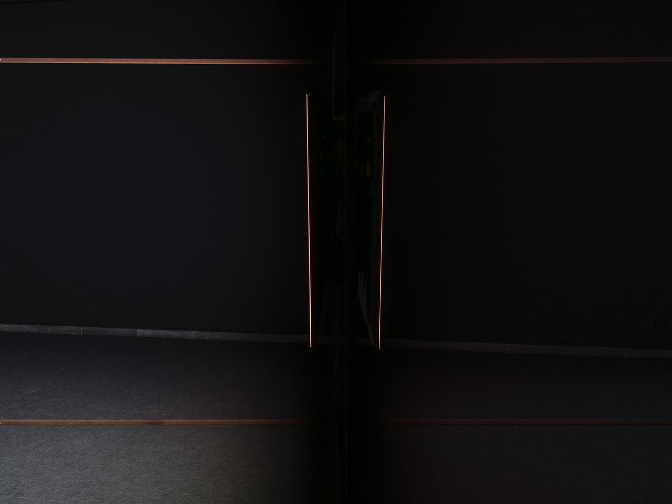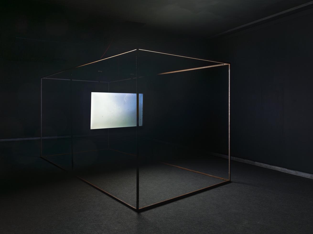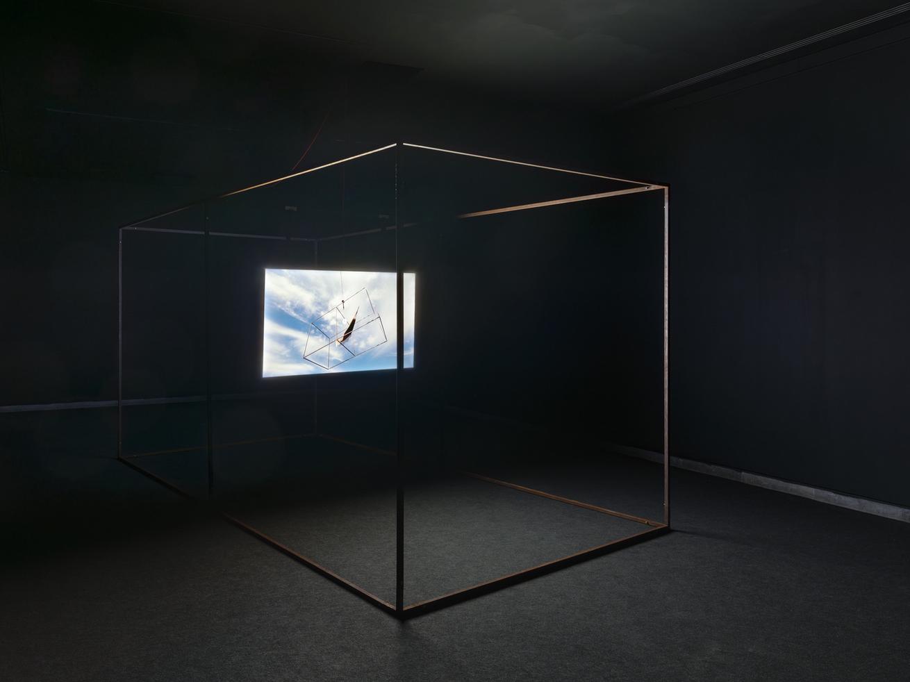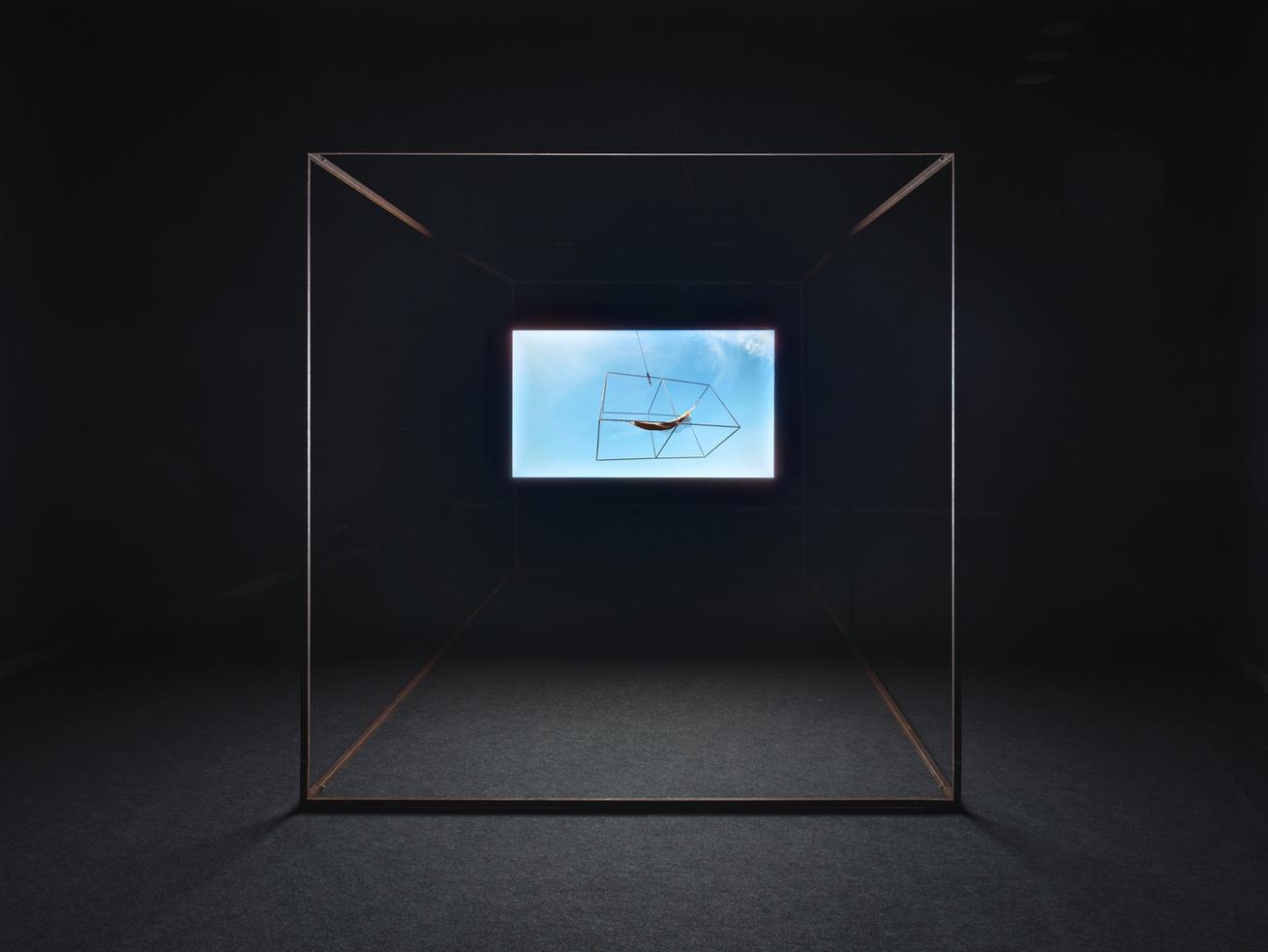 untitled for C, 2024 | rising series |steel structure, 2 screens 65", 2 videos (6h20m each) | original soundtrack | 225 x 225 x 225 cm